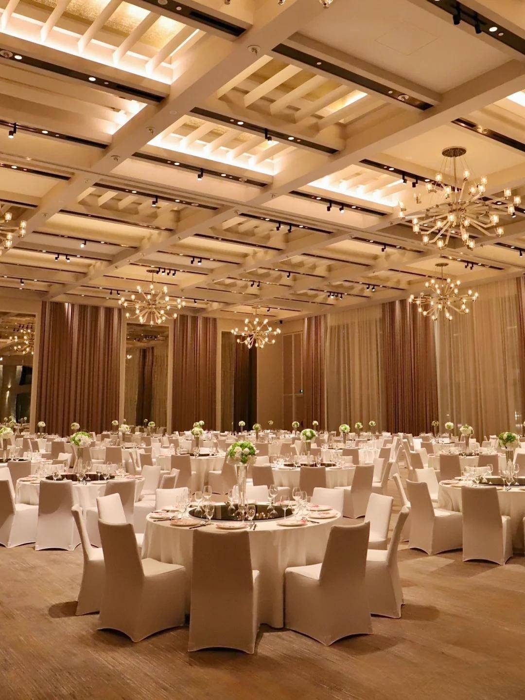 酒店拥有于杭城首屈一指的超3500平米的无柱宴会设施,主宴会厅高度达9米并配备汽车专用电梯,展车可从地面直达宴会厅;先进的会议影音影像系统、环幕全息投影、超80个天花吊点等条件可满足各类主题宴会需求。酒店六层设有户外露台及会议空间,不论是休闲沙龙、教堂婚礼亦或是户外主题派对均可于此完美呈现,将宾客从城市的喧嚣带入一种幽静私密的氛围之中。