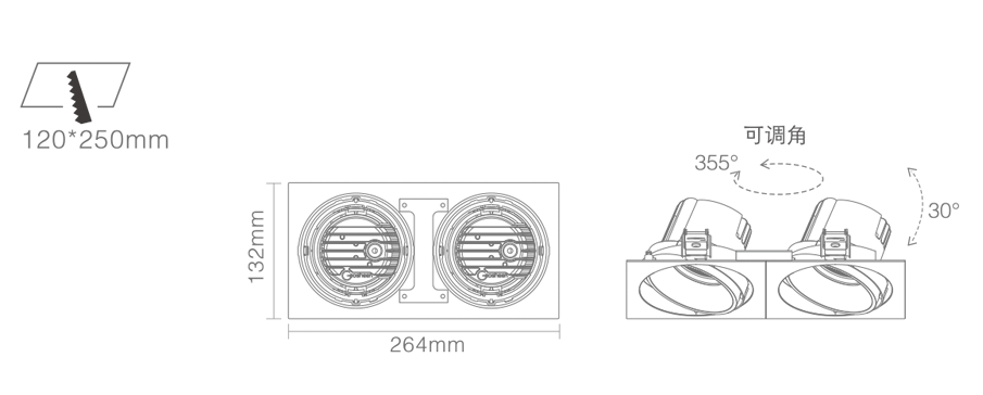 3. Clearance around light fting to be alowed for angular adjustment;保留足够空间以便灯具可作调节角度;