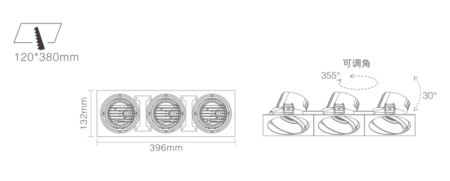 3. Clearance around light fting to be alowed for angular adjustment;保留足够空间以便灯具可作调节角度;