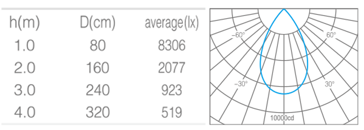 - 光束角50°