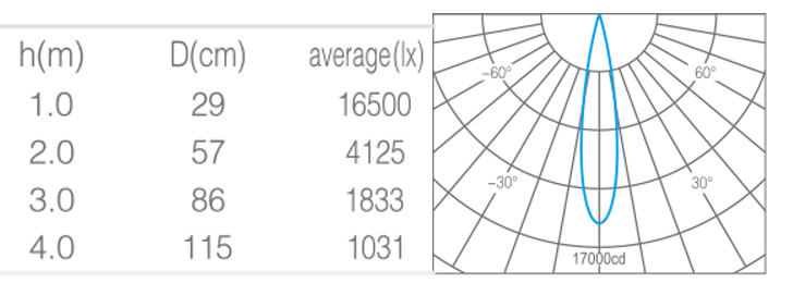 - 光束角15°