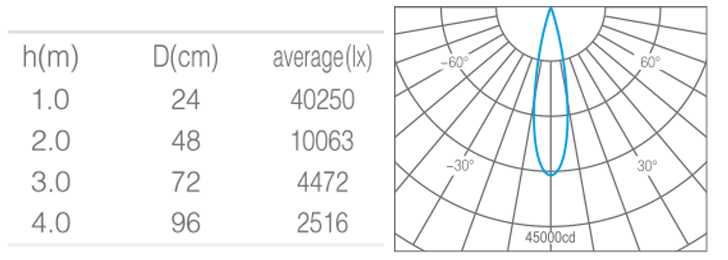 - 光束角15°