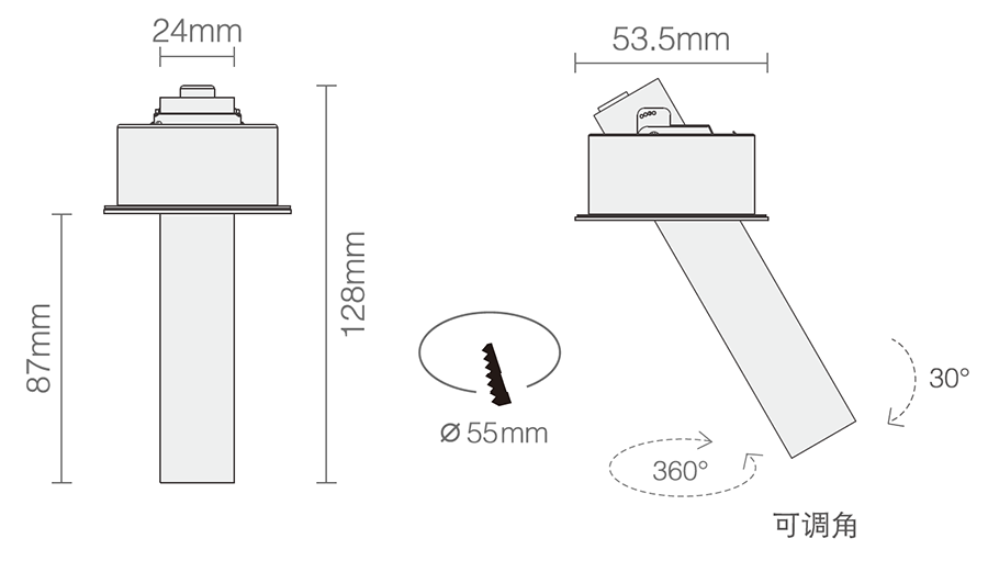 3. Clearance around light fting to be alowed for angular adjustment;保留足够空间以便灯具可作调节角度;