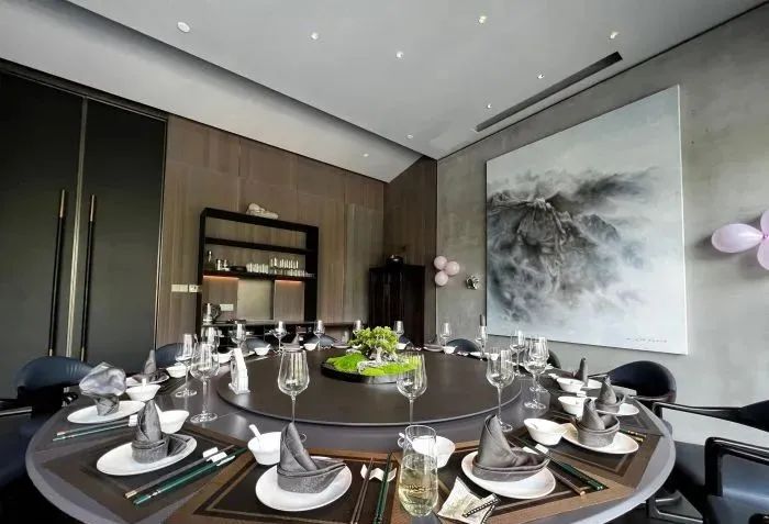人性化的包厢设计,因其“以餐为主,以茶为辅”的餐饮理念,包厢中均有茶台来提供多样的商务洽谈环境。