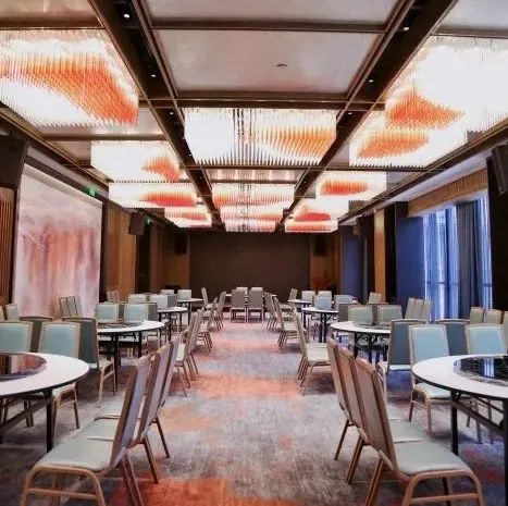 宴会厅采用优雅而现代的装修风格,整齐排列的筒灯为空间提供充分照度,结合天花装饰灯,如此精心的用灯设计,将整个宴会厅营造出低调奢华之感。