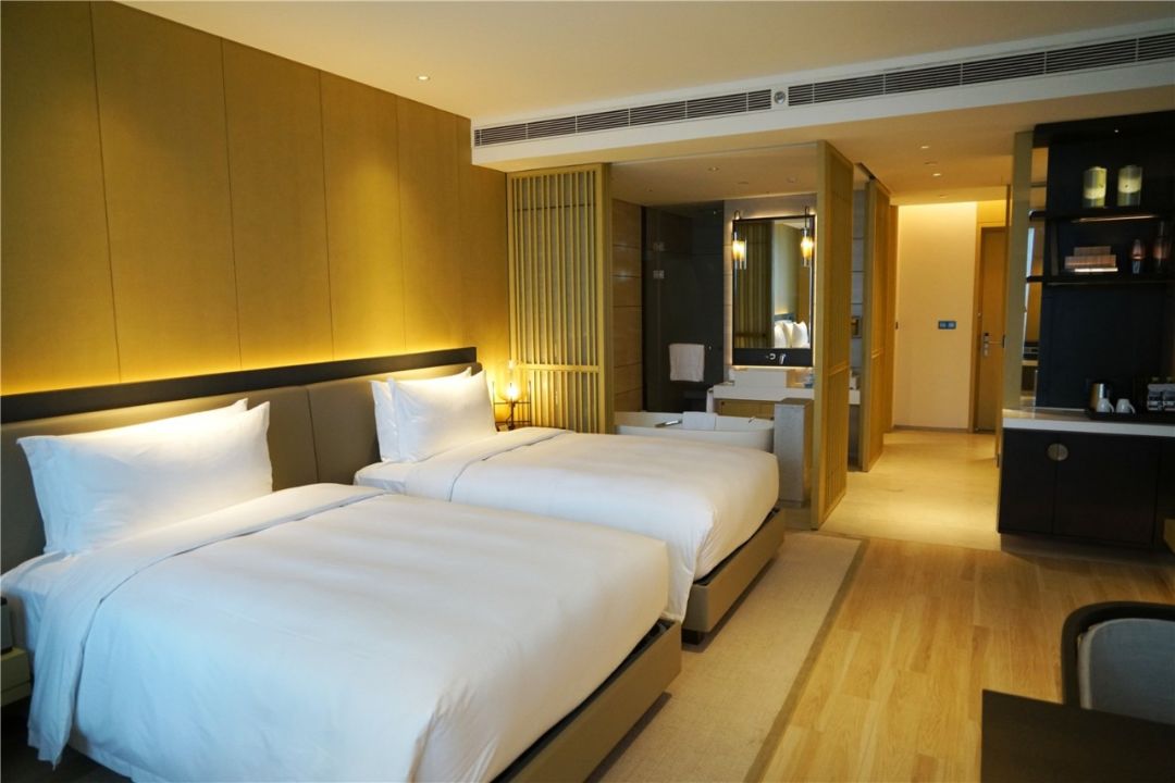 客房的照明设计尤其注重友好的住客体验和舒适的居住感受。客房内光影设施齐全,暖色系装饰材料在暖色灯光氛围烘托下,更显空间的舒适。如此精心打造了舒适宜居的环境,使入住者更容易获得身心的放松。