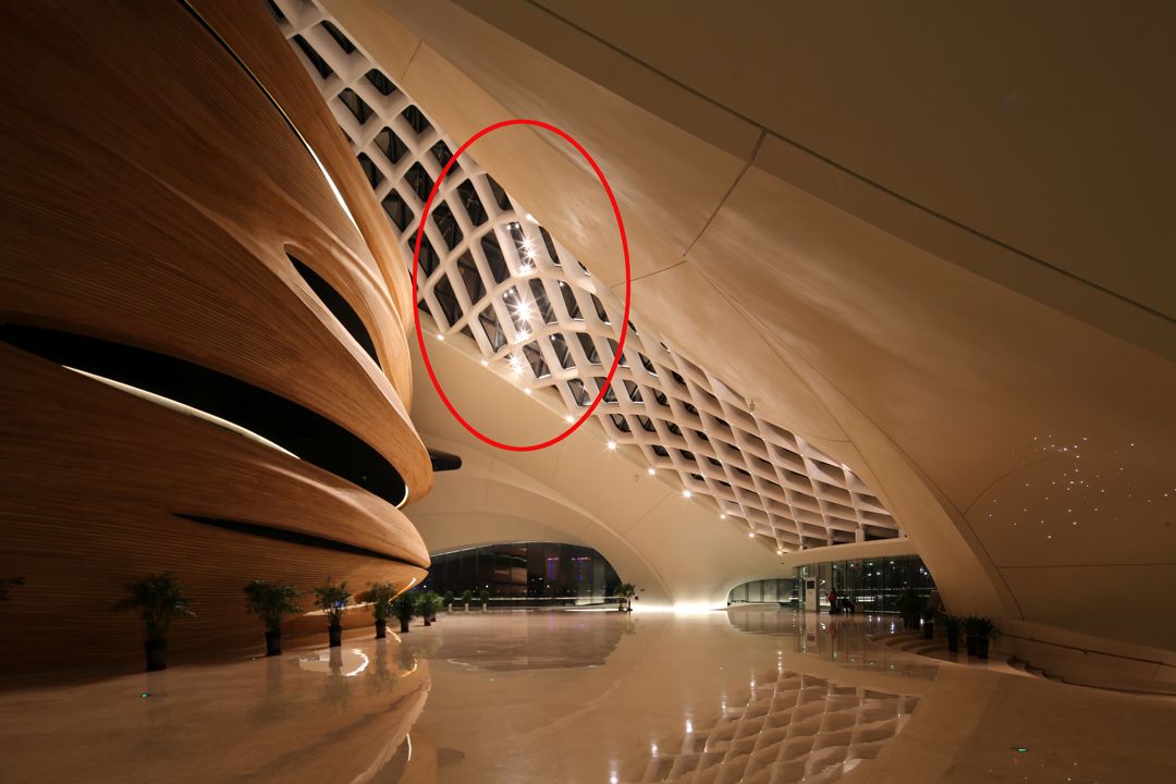 有童鞋说,大剧场那三排组成弧线的灯可不简单,如此高的空间,要防眩要均匀,灯具设计与光品质必须齐飞吧?