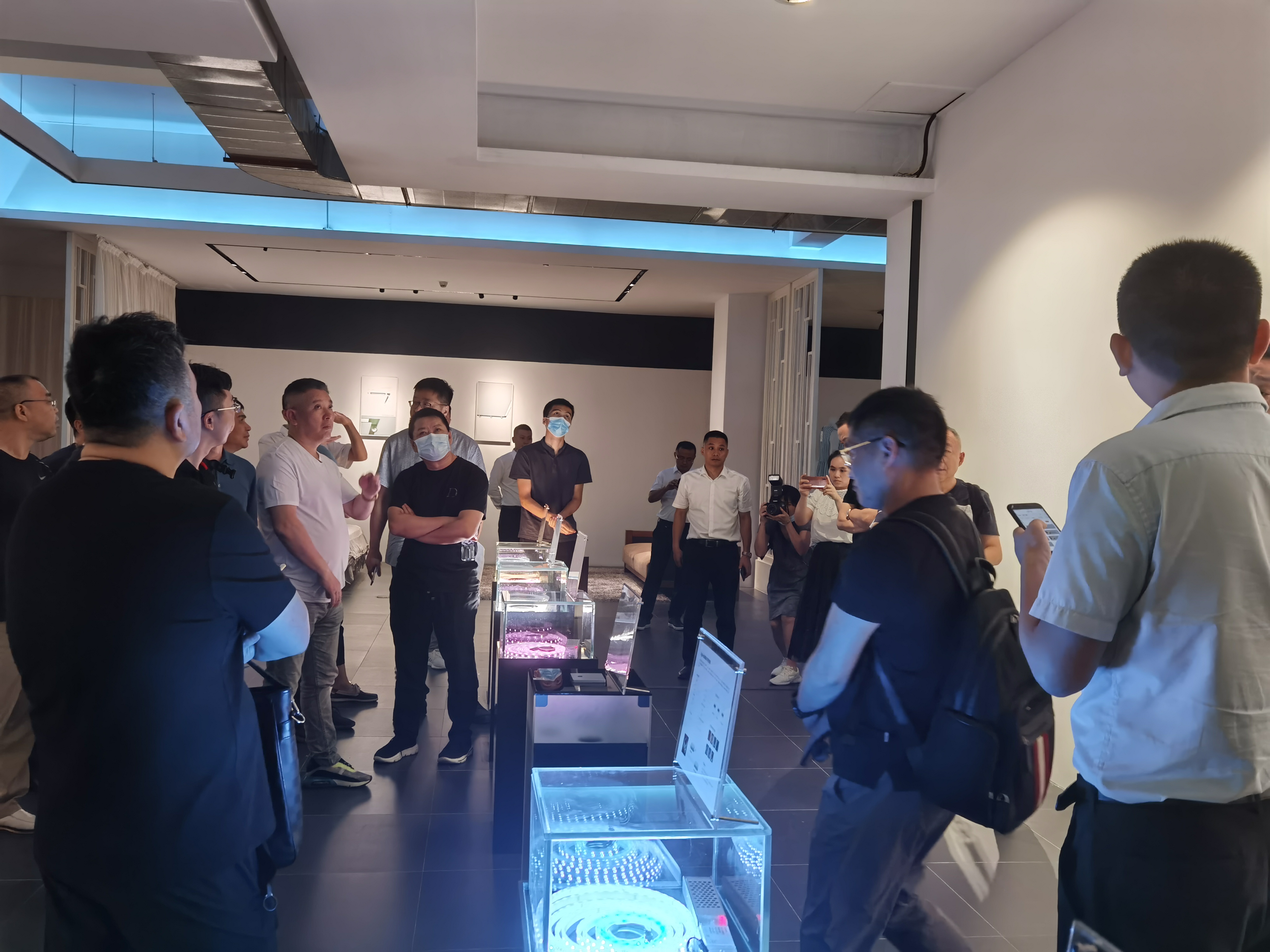 最后参观考察了Geosheen极成光环境体验中心,智能遥控灯可调焦、调角、调光功能使用不再局限于空间高度的影响,高空灯光调整变得如此简单。Geosheen极成智能控制系统布线简单,使用稳定方便;智能开关直接替换老式开关轻松享受智控生活;让大家在体验创新技术成果时,真正的了解到Geosheen极成的研发能力。