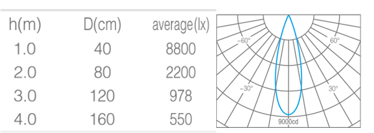 • 光束角25°