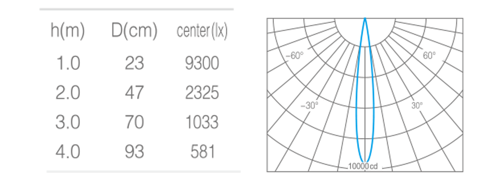 • 光束角10°