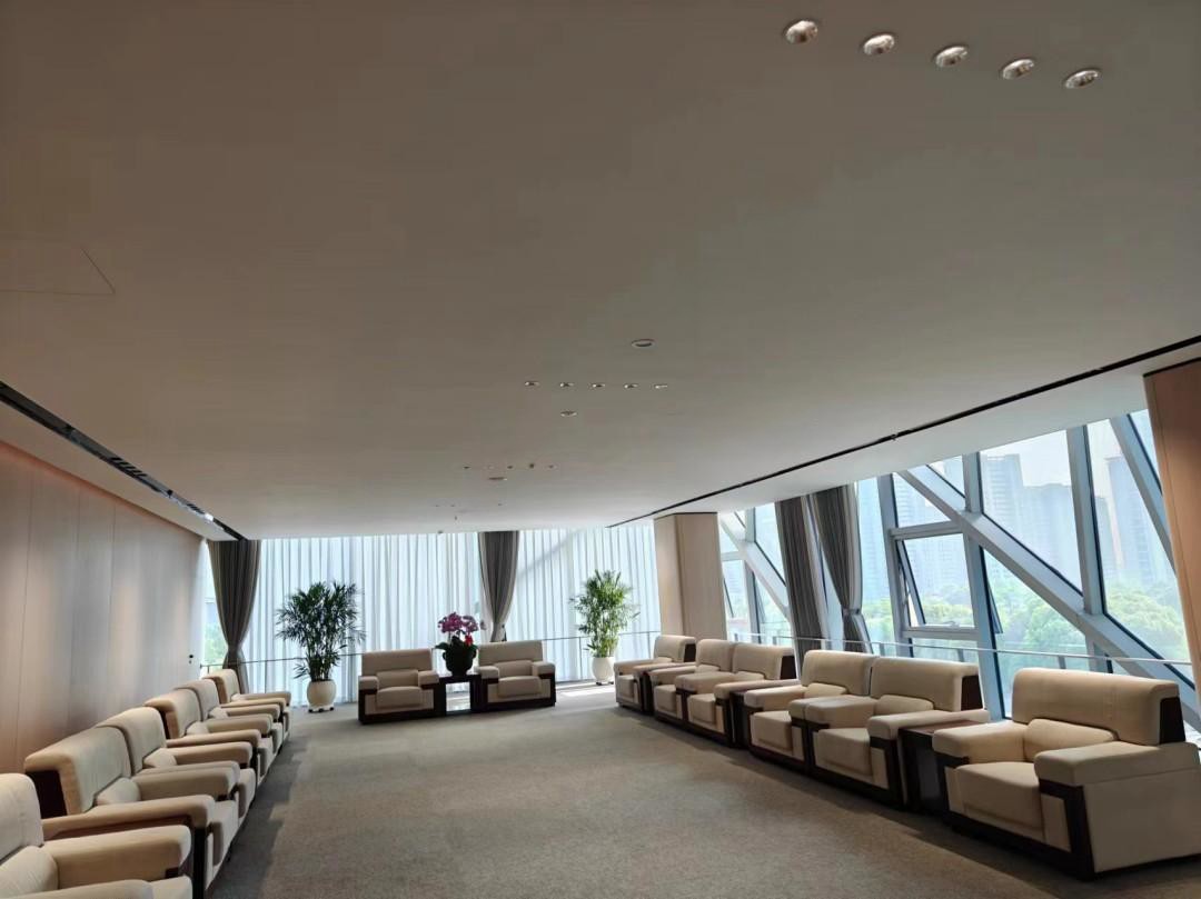会议室专为集思广益、共商大计而设的空间,以其简洁明亮之姿,诠释着高效与现代的融合。天花顶黑色的凹槽设计如星河般引导着视觉的延伸,似乎要将人们的思绪引向那深邃无垠的宇宙。而平顶天花上,Geosheen极成防眩天花灯巧妙地隐匿其中,既满足了会议的照明需求,又巧妙地避免了眩光的干扰。暗藏的软灯带,则如同细水长流,发出柔和而温暖的光芒,为整个空间增添了几分宁静与雅致。在这样的环境下,每一个角落都弥漫着和谐与舒适的气息,仿佛时间在这一刻凝固,只为让人们更好地沉浸在思维的海洋中,激荡出智慧的火花。