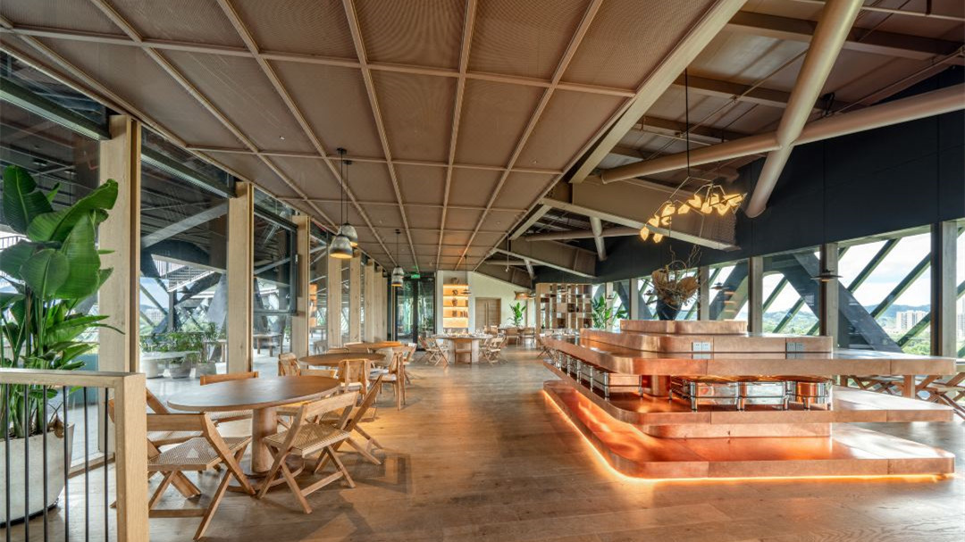 餐厅内大量使用木质家具,与亲肤的棉麻质感,材质的交融与呼应,带给客人独特且舒适的体验,采用艺术吊灯,满足功能需求外,还增添了几分艺术氛围感,与周围环境相得益彰!