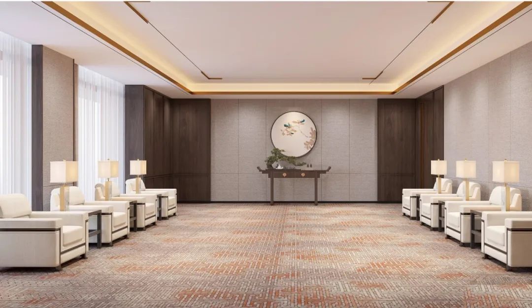 大堂营造出一个具有东方韵味的空间,纳自然之形、造空间之意,每个人心中都有一方净土,关乎自然、清幽、无忧的唯美之境,而暖黄色的灯光笼罩着大堂,整个空间开阔、明亮而又温暖。