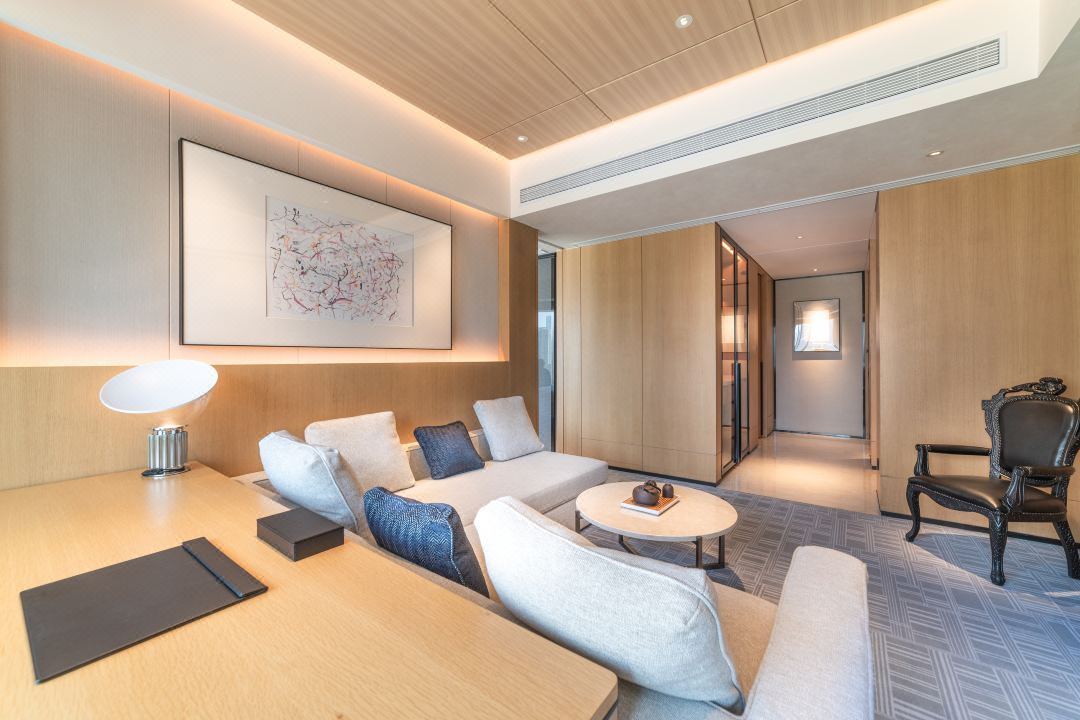 暗藏于天花的灯带勾勒出空间线条